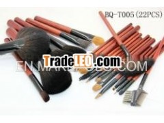 2014 new 22 pcs brown wooden handle aluminum pipe pbt hair &goat cosmetic brush set