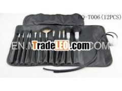 2014 new 12pcs black wooden handle aluminum pipe goat&pbt hair cosmetic brush set